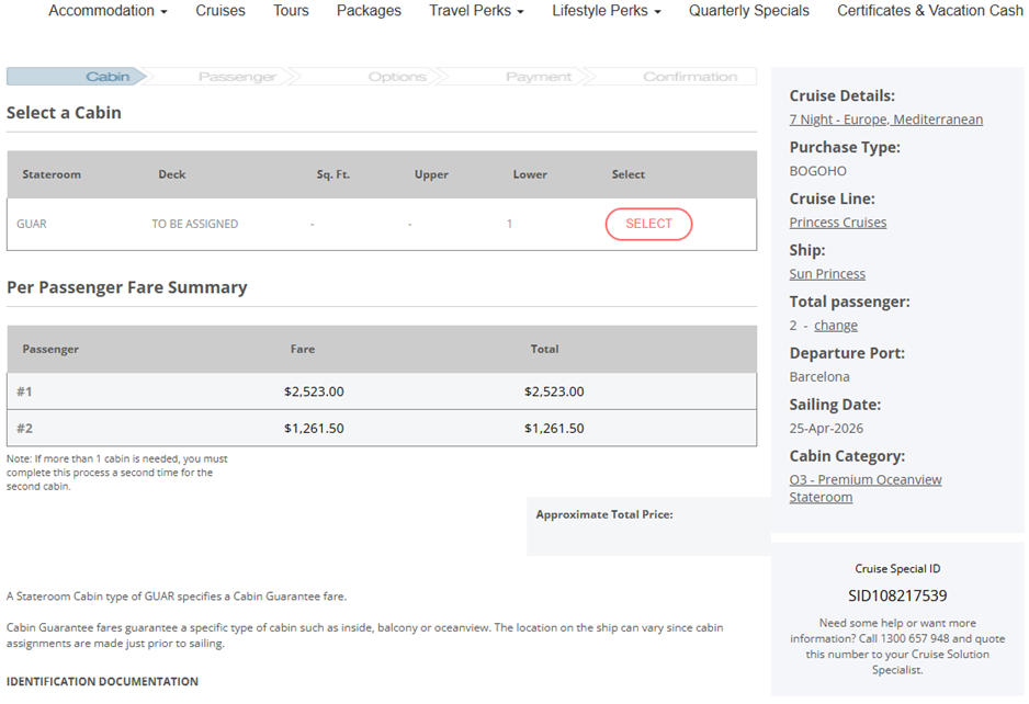 Carefully check the full pricing, including taxes, port charges, government fees, and any applicable booking or redemption fees.